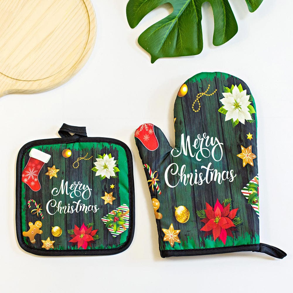 Product category: Microwave oven gloves Material: Polyester Pattern: Christmas print Glove length: 17*27 17.5*17.5 Product function: heat insulation, anti-scald, high temperature resistance Use scene: kitchen barbecue baking